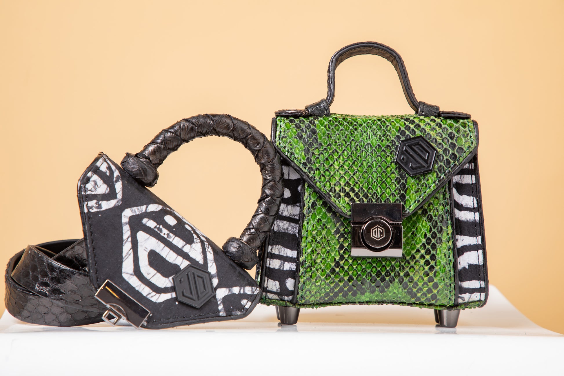 What sets ÀṢÀ apart is its interchangeable flap system: the bag comes with two distinct tops — one in python leather, the other with a hand-braided handle and Adire fabric — that can be zipped on or off. This makes ÀṢÀ not just a bag, but a wearable canvas for cultural storytelling. Future flaps will be available in new colours and textures, allowing collectors to personalise and evolve their bags over time.